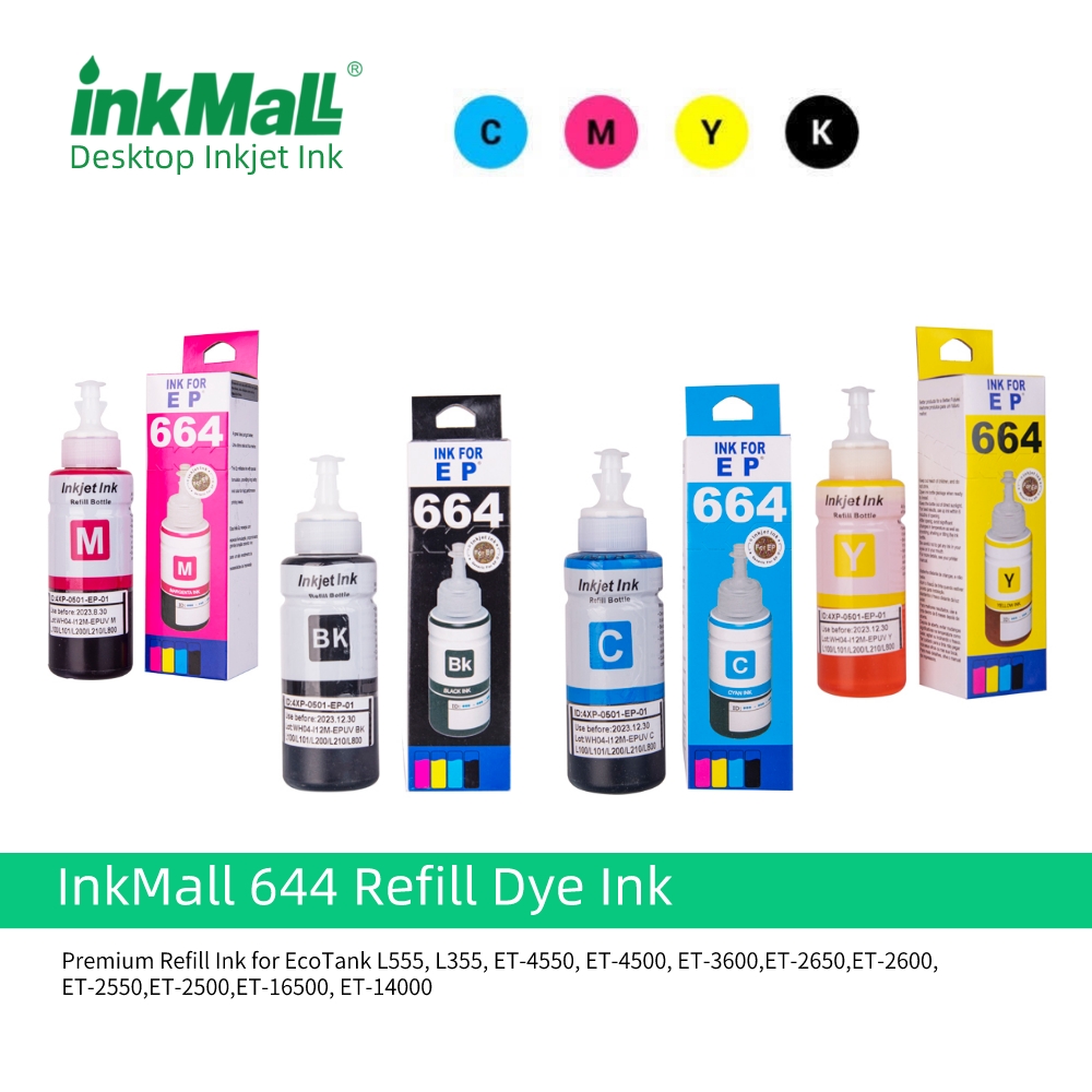 Premium Refill Ink for EcoTank L555, L355, ET-4550, ET-4500, ET-3600,ET-2650,ET-2600, ET-2550,ET-2500,ET-16500, ET-14000